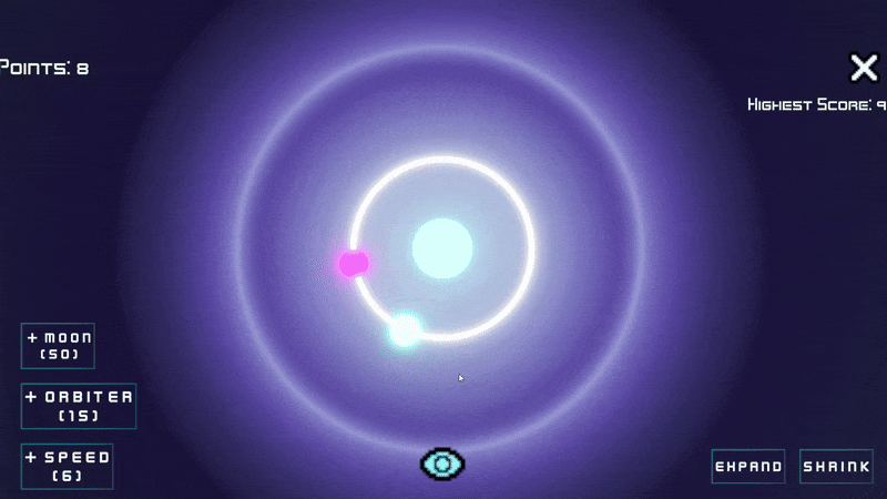 Moons have been added to the game! For a steeper price, you can add a Moon to one of your Orbiters further helping out with the collective effort of making that number go up! There's currently only a couple colors for Moons, but I do have intentions on adding other colors and using Moons to further expand some upcoming features I have in mind.
